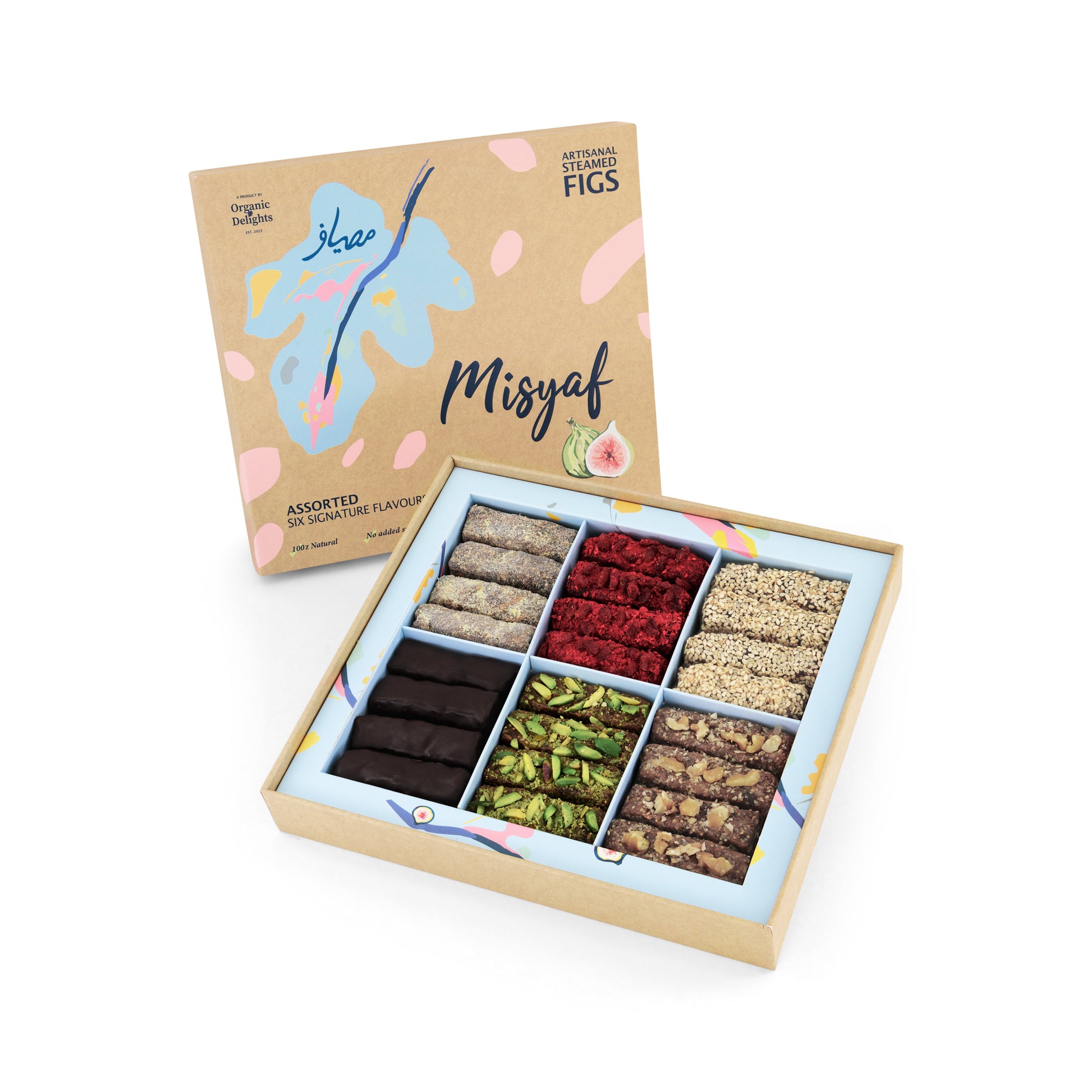 A luxurious selection of handcrafted steamed fig treats. Expertly filled with premium roasted nuts, and 100% natural ingredients. This elegant selection features six signature flavors, each offering a unique taste and experience.